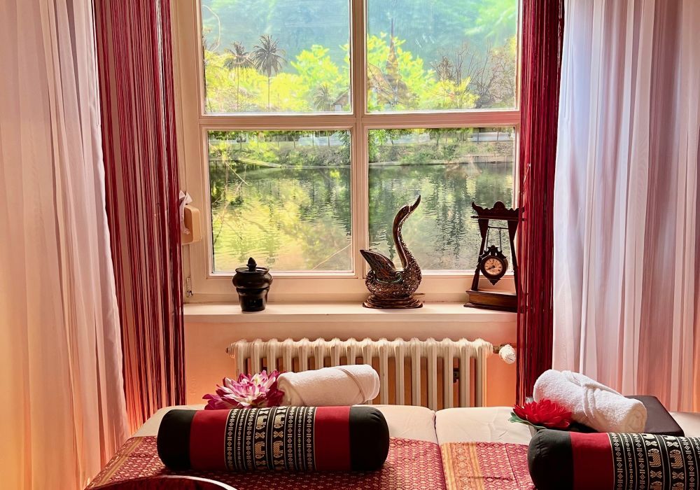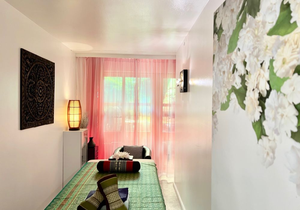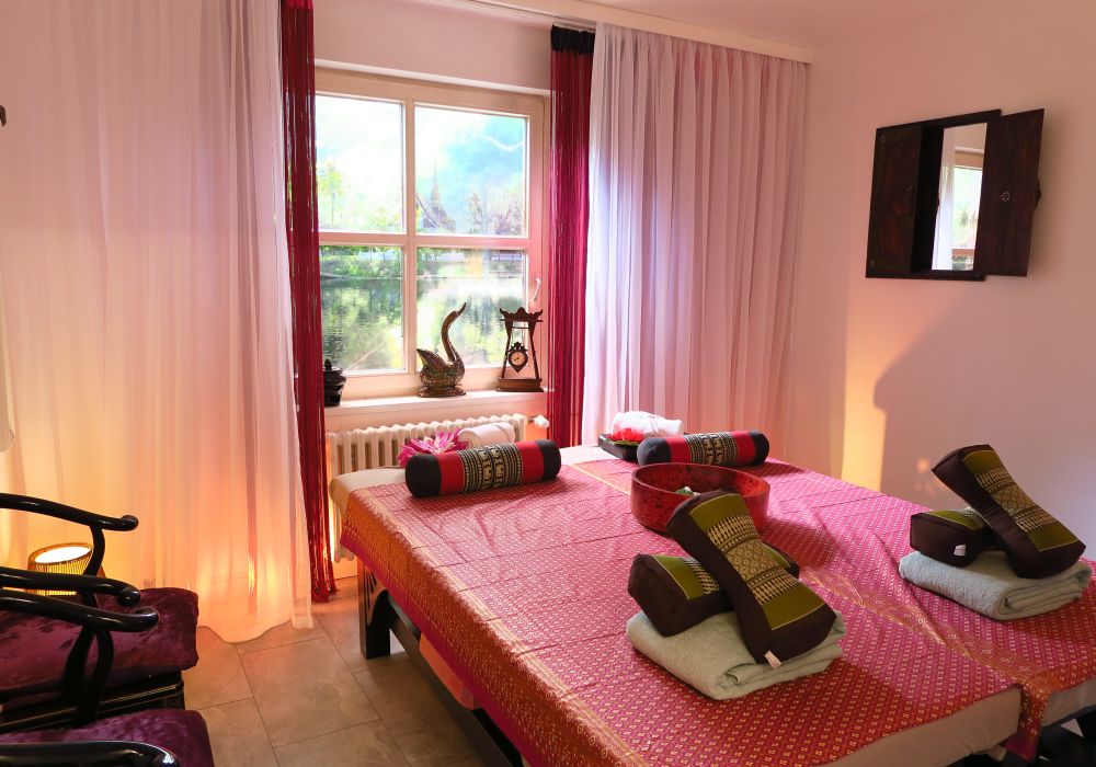 Es stehen zwei helle Jasmine Design Single Behandlungszimmer zur Verfügung die mit Original ASIA SPA Liegen aus massiven Buchenholz in 200x100 cm ausgestattet worden sind.