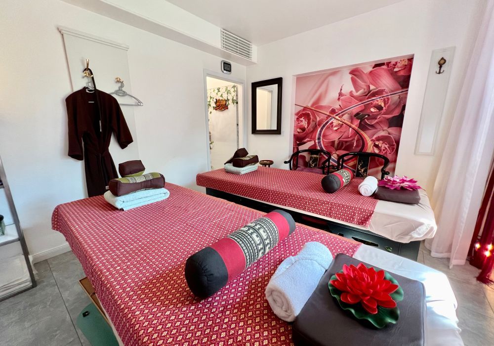 Auch ist hier eine Single Premium Option buchbar. Hier kommt dann eine XXL ASIA SPA Liegen zum tragen (160Bx200cm), da die SPA Liegen von den Fläche bequem verknüpfbar sind.